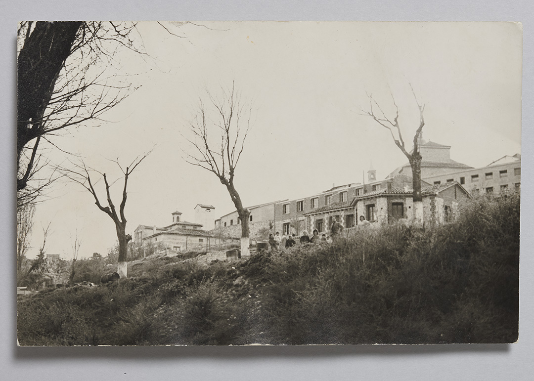 La serie de postales contiene una misteriosa fotografía de un grupo de personas en una carretera de Horche, Guadalajara. ¿Son Julia y Narciso la joven y el bebé que aparecen a la izquierda de la imagen?